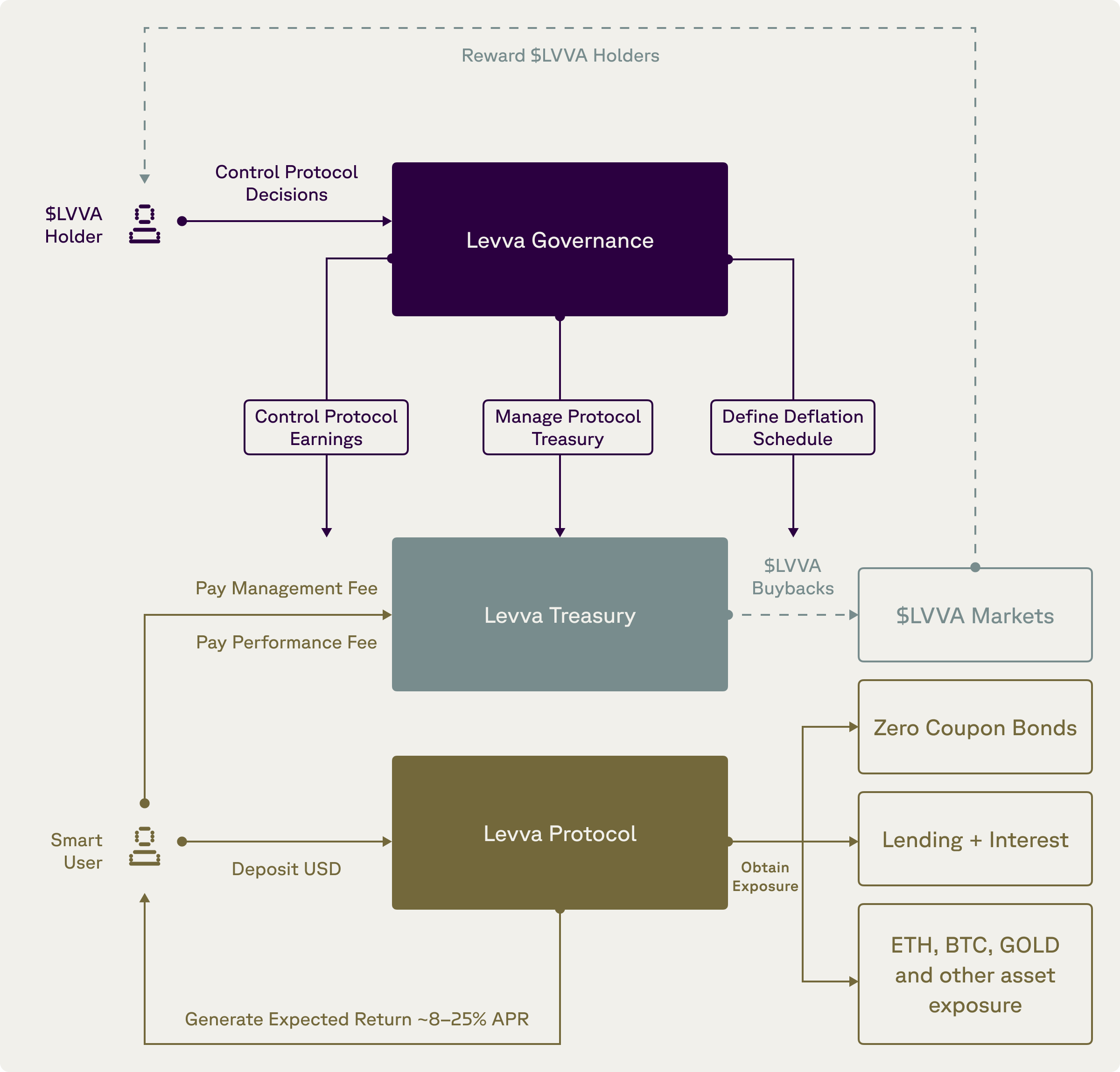 - Fees flow into the Levva Treasury